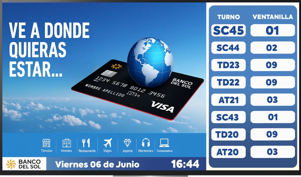 Comunícate de manera constante y cercana con tus clientes utilizando nuestras pantallas digitales. Esta solución facilita la interacción con tus clientes de forma dinámica y relevante, mejorando la relación y el compromiso con tu marca.