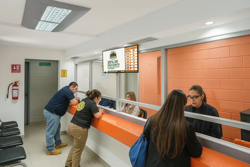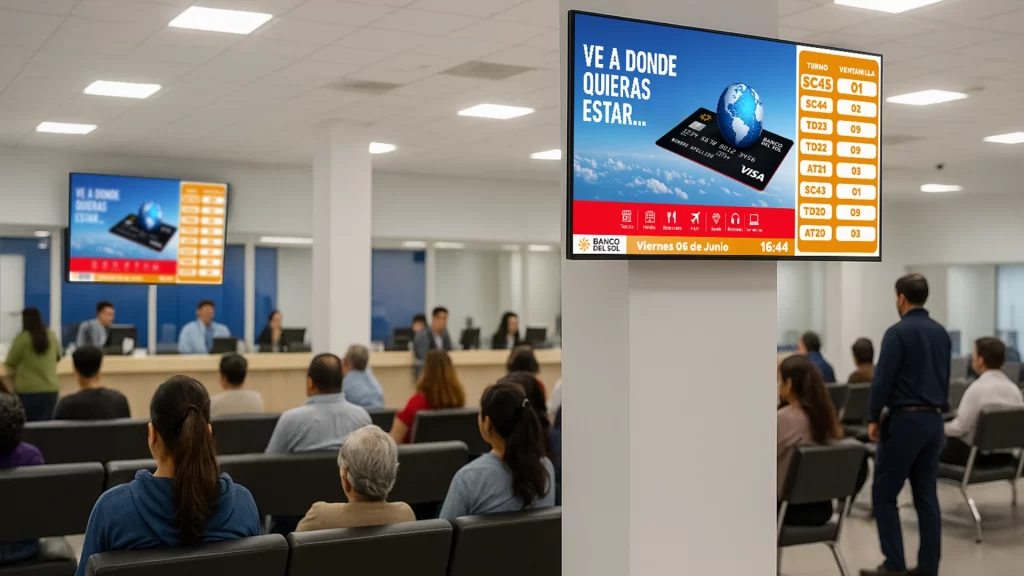- • Pantallas digitales instaladas en puntos clave para mostrar turnos, avisos y mensajes personalizados.
