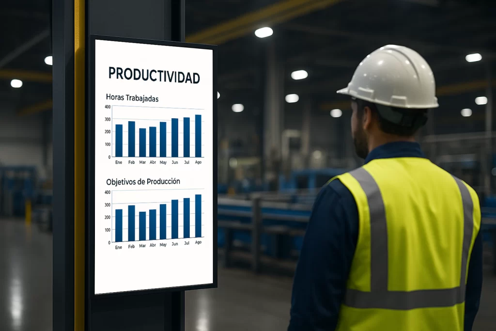Esta herramienta te permite mostrar indicadores clave de rendimiento, métricas de operación y mensajes internos de forma visual, clara y dinámica.